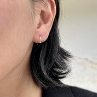 Just enough accent for your lobes, just a sliver of sparkle will do. These huggie style earrings are the minimalist dream. All the must and no fuss. Hammered flat on one end to maximize the light catching and shaped to hug around the piercing.